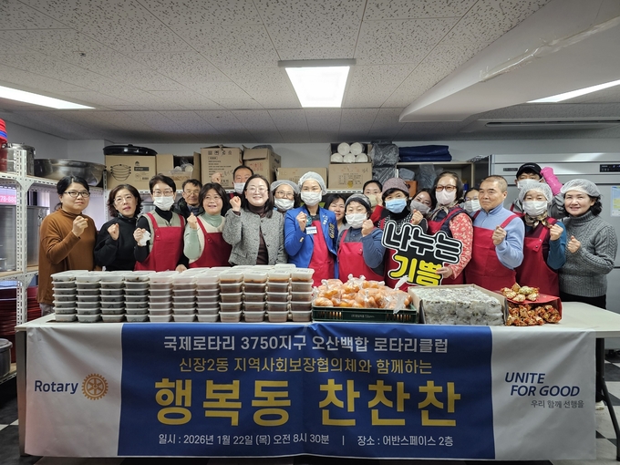 오산시 신장2동 행정복지센터는 지난 22일 신장2동 지역사회보장협의체와 오산백합로타리클럽과 함께 2026년 첫 ‘행복동 찬찬찬’사업을 실시했다고 23일 밝혔다.
