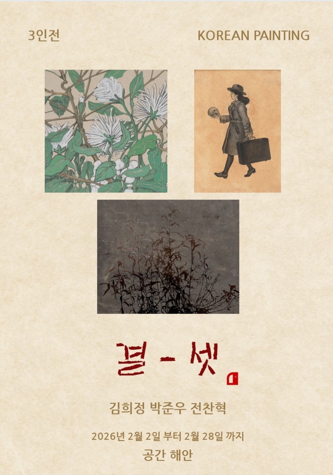 한국화에서 출발한 '3인 3색'의 시선과 회화적 언어, 공간해안 기획전 '결-셋'