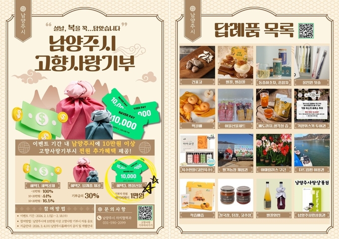 남양주시가 설 명절을 맞아 고향사랑기부제 활성화를 위해 ‘설맞이 세뱃돈’ 이벤트를 추진한다고 3일 밝혔다.