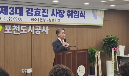 4일 오전 9시 포천도시공사 제3대 사장으로 취임한 김효진(62) 사장은 “포천 시민들의 일상에서 가장 가까운 공기업을 만들어 나갈 것”이라고 취임 일성을 밝혔다.