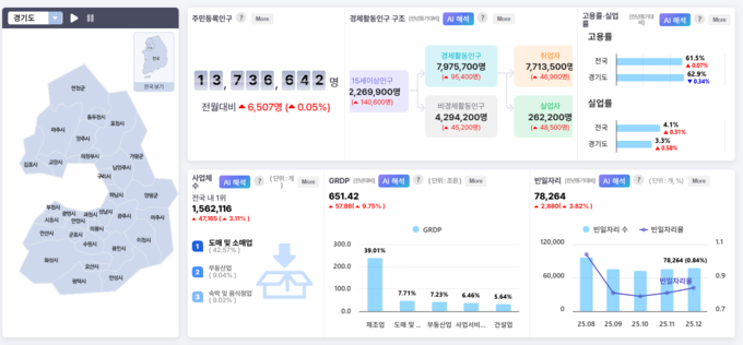 재단은 도내 주요 경제 지표 변동 모니터링을 위한 ‘경제대시보드’에 이어 생성형 인공지능(AI) 활용, 일자리지표 요약·해석·비교 분석 정보 등을 제공하는 ‘AI데이터서포터’를 개발했다.