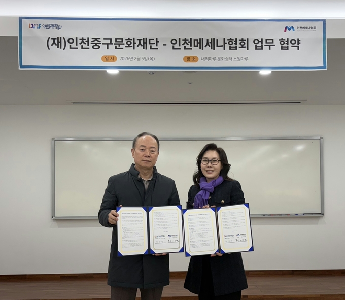 인천메세나협회는 5일 내리마루 문화쉼터 소원마루에서 (재)인천중구문화재단과 업무협약(MOU)을 체결했다고 6일 밝혔다.
