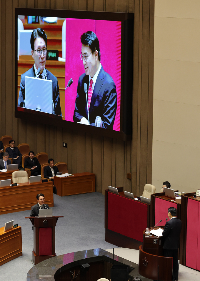 윤 의원은 북핵 문제와 대북 관계를 추궁하며 “외교·안보·통상의 기준선이 흔들리고 있다”며 “자주국방에는 동의하지만 낙관적인 수사(修辭)만으로 안보를 지킬 수는 없다”고 지적했다.