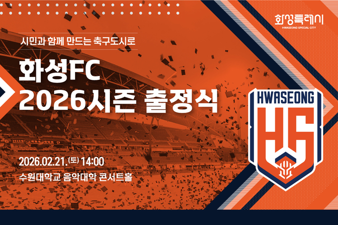 행사는 구단주인 정명근 화성시장의 출정사를 시작으로 ▲2026시즌 코칭스태프 및 선수단 소개 ▲주장단 인사 ▲응원구호 퍼포먼스 순으로 진행된다.