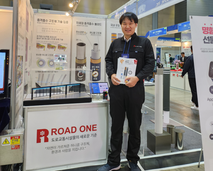 지난 2020년 설립된 로드원은 볼라드 전문 생산업체다. 부딪힘에 의한 타격을 최소화한 ‘허니콤 볼라드’가 대표 상품이다. KTX에 활용되던 벌집구도의 폐플라스틱을 이용해 도로시설물의 충격 흡수력을 크게 높인 제품이다.