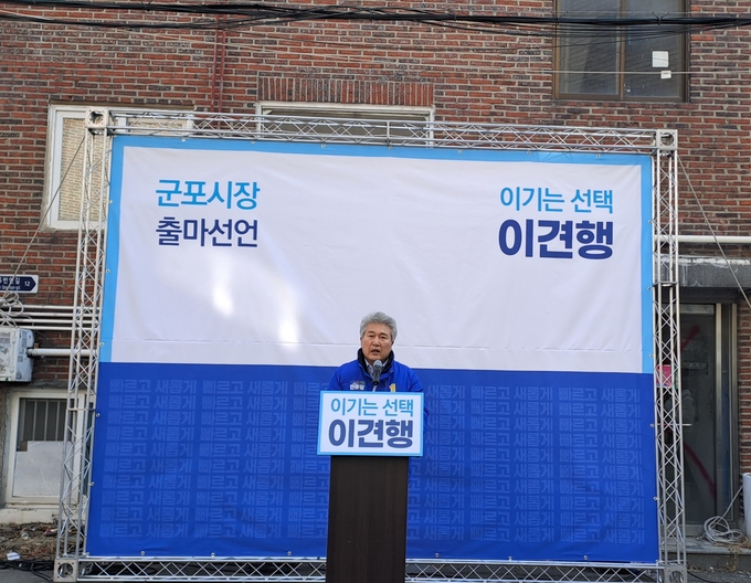 이견행 전 군포시의회 의장이 21일 오후 군포 10구역 재개발 정비사업 철거 현장에서 차기 군포시장 선거 출마를 선언했다.