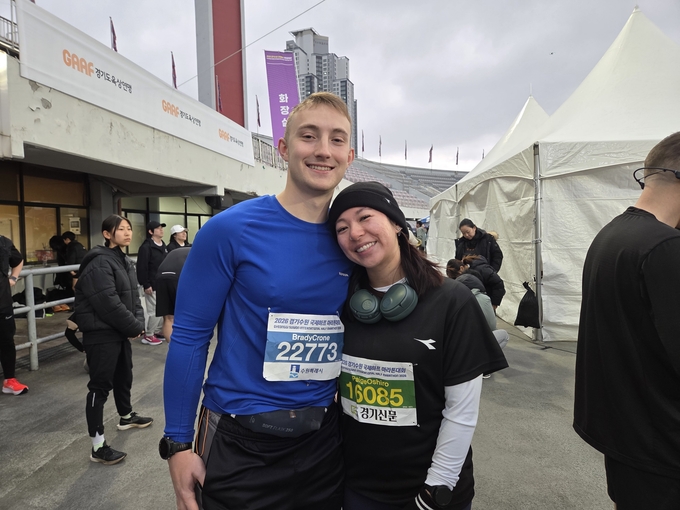 이날 경기장을 함께 찾은 BradyCrone과 PaigeOshiro 커플은 러너로 활동 중인 수원시민으로, 각각 하프 코스와 10km에 참가한다.