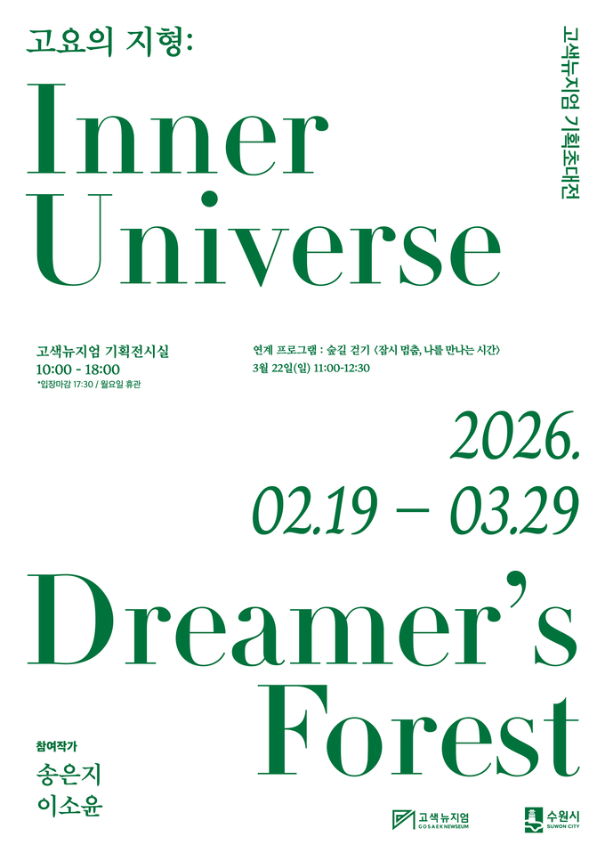 고색뉴지엄이 올해 첫 기획초대전으로 '고요의 지형: Inner Universe Dreamer’s Forest'를 29일까지 고색뉴지엄 기획전시실에서 개최한다.