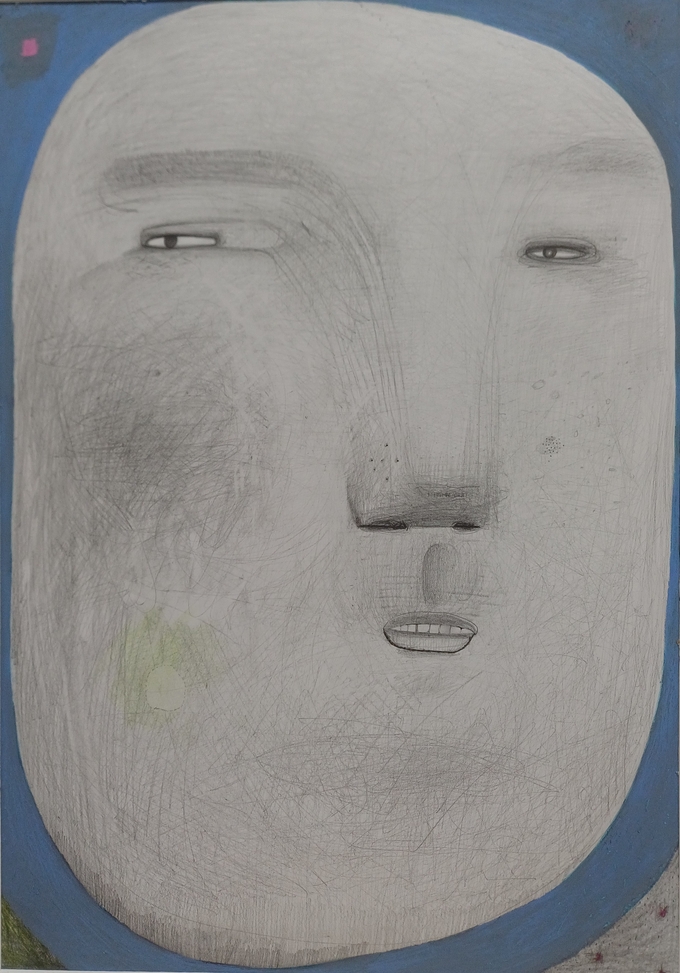 무수한 연필 선이 쌓여 형성된 이 지형은 얼굴 형상 이면에 고여 있는 정적과 존재의 순수한 상태를 마주하는 수행적 과정의 기록이기도 하다.