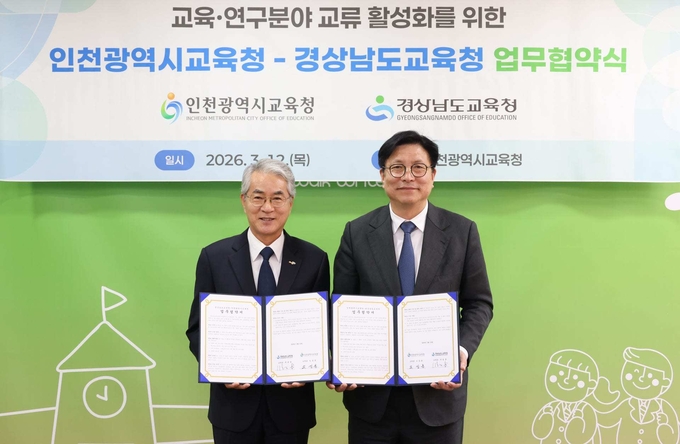 인천시교육청은 12일 경남도교육청과 읽걷쓰교육 확산과 교육·연구 분야 교류 활성화를 위한 업무협약을 체결했다고 밝혔다.