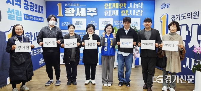 안성시 장애인공유네트워크 관계자들은 16일 황세주 예비후보 선거사무소에서 지지선언을 진행하고 경기도의원 선거에 출마한 황 예비후보에 대한 지지 의사를 밝혔다.