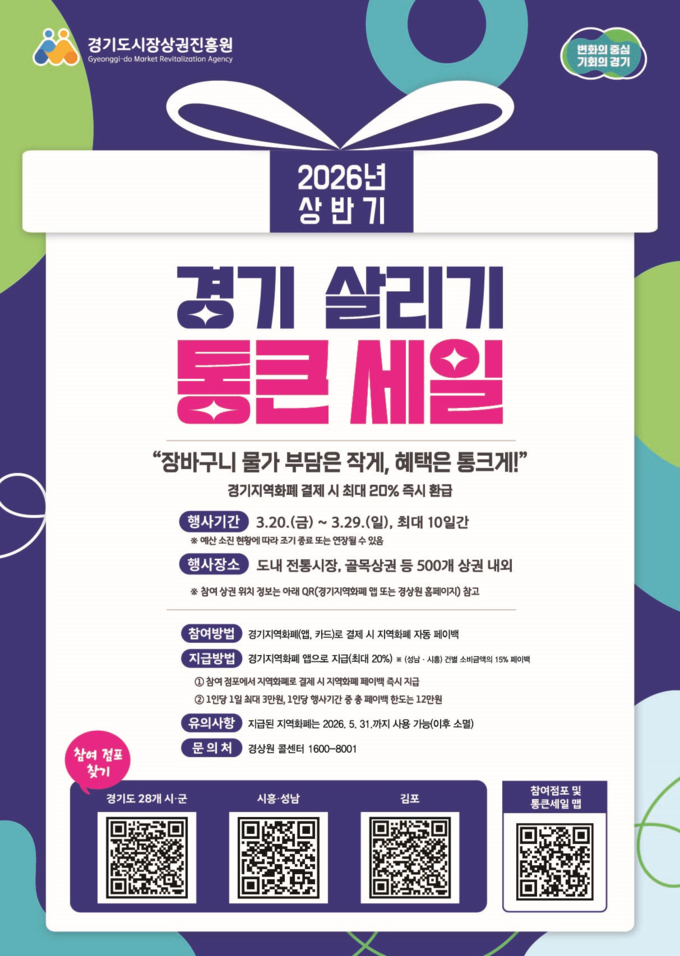 고물가·고금리로 위축된 소비 심리를 되살리고 소상공인 매출을 끌어올려 지역경제에 활력을 불어넣기 위해 경기도시장상권진흥원이 주관하는 행사다.