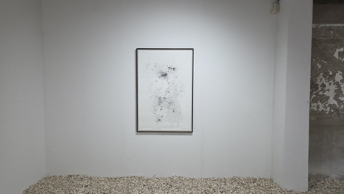 작가는 목탄 가루를 종이 위에 떨어뜨린 뒤, 그 움직임을 인위적으로 통제하지 않는다. 가루는 떨어지고 모이며, 다시 흩어지는 과정을 반복하면서 자연스럽게 형태를 만든다.