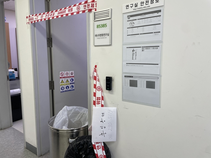 바로 옆 연구실에서는 한 대학원생이 노트북을 켜고 작업을 하고 있었고, 수습 작업이 진행 중인 공간은 사고 여파와 일상이 한 공간에서 뒤섞여 있었다.
