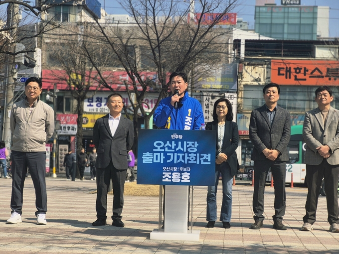 조 용호 오산시장예비후보가 지난 21일 2시 오산역 광장에서 기자회견을 열고 다가오는 지방선거에서 오산시장 출마를 공식 선언했다.