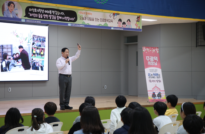 주광덕 남양주시장이 25일 마석초등학교 6학년 학생을 대상으로 진로특강을 열고 학생들에게 꿈과 희망의 메시지를 전달했다.