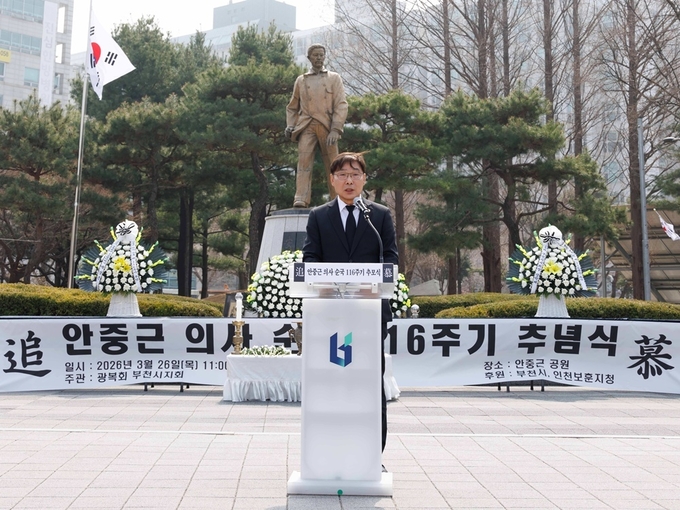 김병전 부천시의회 의장은 26일 안중근공원에서 열린 안중근 의사 순국 제116주기 추념식에 참석했다.