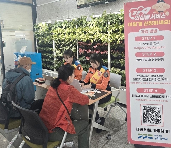 구리소방서는 30일 구리시보건소 1층에서 보건소를 방문한 고령자 등 민원인을 대상으로 ‘119안심콜 서비스’ 활성화를 위한 찾아가는 홍보 부스를 운영했다.