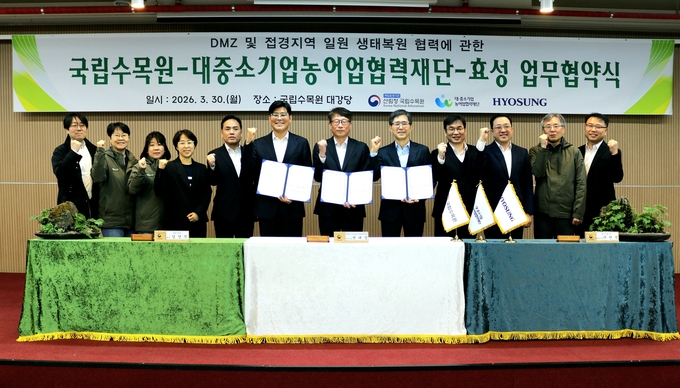포천시 소재 국립수목원은 지난 30일 대중소기업농어업협력재단과 효성그룹이 공동으로 참여한 DMZ 일원 생태복원에 따른 업무협약을 체결했다고 밝혔다.