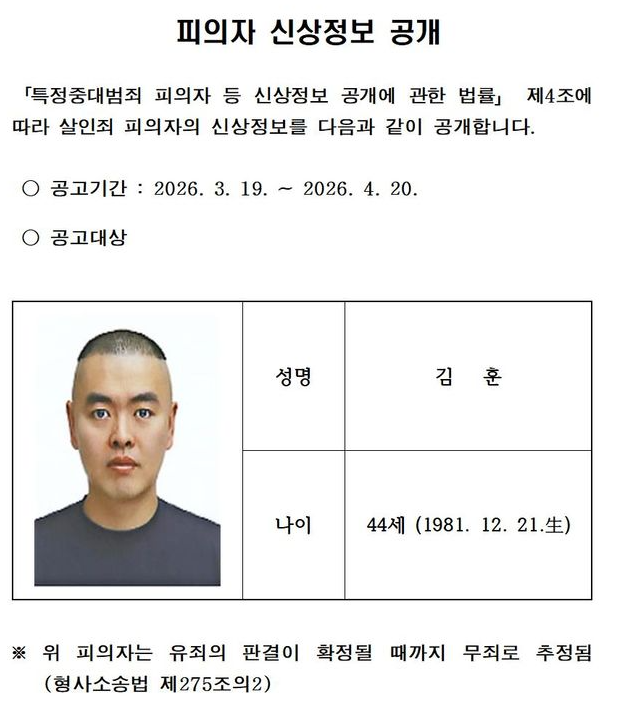 한편, 스토킹 사건 피의자 김훈은 8일 남양주지청 형사1부에 의해 구속기소됐다. 김훈에게는 특정범죄가중처벌법 상 보복살인 등 6개 혐의가 적용됐다. 김훈에 대한 정신진당검사에서 40점 만점에 33점이 나와 사이코패스 판정(25점 이상)이 나왔다.