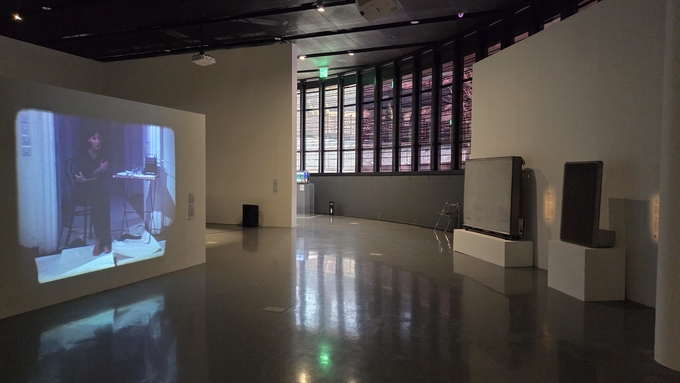 전시장에 들어서자 송출되는 비디오 영상 두 개.