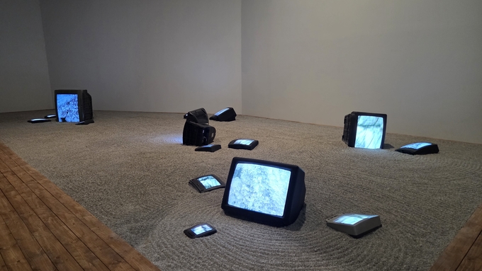 흰 자갈로 덮여 있는 가로 약 5m와 세로 8m의 공간은 15대의 모니터가 각기 다른 깊이와 각도로 묻혀 있다. 관람객은 동선을 따라 감상하지만, 어느 지점에서도 15대의 모니터를 한눈에 볼 수 없다.