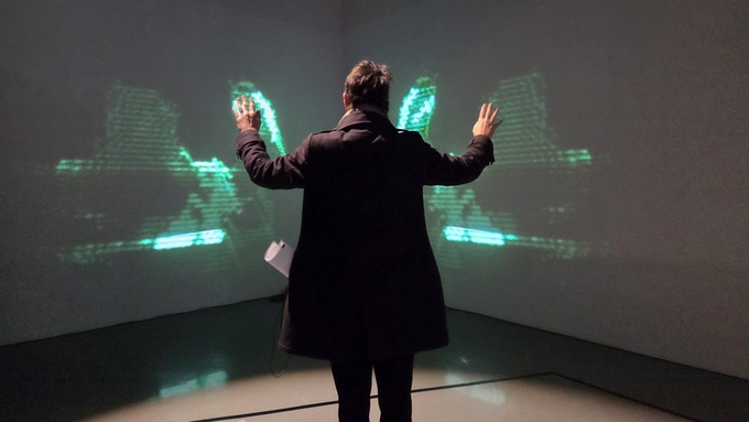 전시장을 둘러본 뒤 2층 공간으로 이동하면, 자그레브 현대미술관에 설치된 센서 신호가 백남준아트센터로 전달돼 크로아티아 관람객들의 움직임에 따라 조명이 반짝인다.