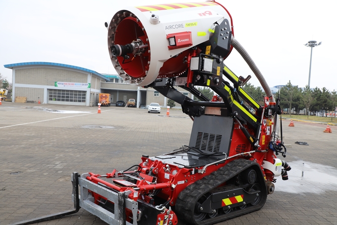이에 개발한 소방 로봇은 물 분무 화재진압·연기배연·중량물 인양·원격조정 기능 등을 하나의 플랫폼으로 통합한 차세대 다목적 무인 전술 로봇이다.