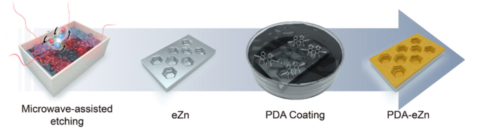 이를 해결하기 위해 마이크로파를 이용해 아연 표면을 1분 만에 미세 다공성 구조로 형성하고, 여기에 홍합 접착 원리에서 착안한 ‘폴리도파민’ 보호막을 입혀 불필요한 반응을 억제했다.