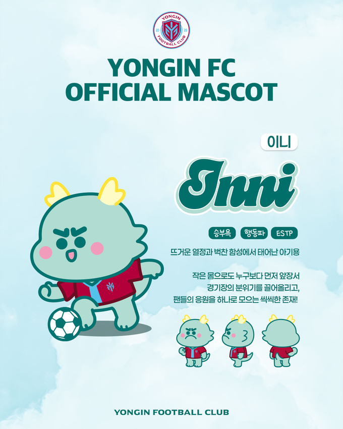 특히 두 마스코트에는 용인 시민들이 축구를 매개로 하나로 모이며 만들어낸 열정과 응원의 에너지가 깨어나, 용인FC를 상징하는 '용'의 모습으로 구현됐다는 서사를 반영했다. 용인FC는 구단이 지닌 역동성과 지역성을 보다 감각적인 방식으로 전달하고, 팬들과의 정서적 연결고리를 한층 확장해 나갈 계획이다.
