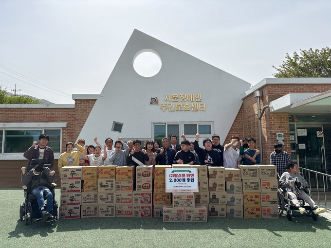 주식회사 팜스코는 지난 20일 약 200만 원 상당의 라면 2,000개를 기부했다. 이번 기부는 서운장애인주간이용시설이 운영하는 장애인의 날 기념 사업 ‘당신과 함께라면’을 지원하기 위해 이뤄졌다.