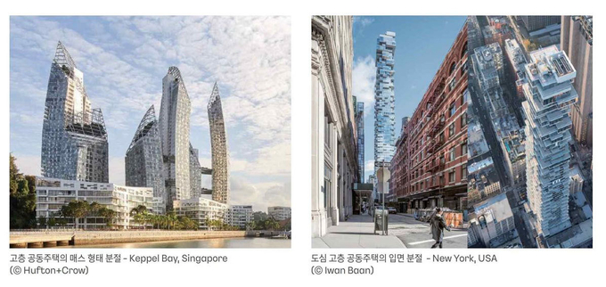 주요 의무사항은 ▲시각적 개방감 확보를 위한 장변 길이 50m 이하 제한 ▲획일적 경관 방지를 위한 주거동 형태 다양화, 판상형 타입 50% 미만 ▲스카이라인 변화를 위한 주거동 간 높이차 25% 이상 확보 ▲외관 디자인 유도를 위한 철제 난간 및 흰색 샷시 금지 ▲커튼월룩 창호 단차 100mm 이하 등이 설정됐다.