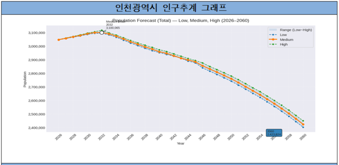 2060년 인천 인구 242만 명 전망…2032년 정점 후 감소 전환