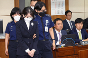 주가조작 및 통일교 등 각종 의혹으로 재판에 넘겨진 윤석열 전 대통령 배우자 김건희 여사가 법원에 출석했다. 재판은 약 40분 만에 종료됐다. 24일 서울중앙지법 형사합의27부(우인성 부장판사)는 오후 2시 10분쯤 자본시장법 위반 및 정치자금법 위반, 특정범죄가중처벌법상 알선수재 등 혐의로 구속기소된 김 여사에 대한 첫 공판기일을 진행했다. 전직 영부인이 피고인 신분으로 재판에 출석하는 건 헌정사 최초다. 이날 재판에선 법정 내 촬영이 허가된 만큼 재판부는 재판 시작에 앞서 법정 촬영 허가 사유와 촬영 시 유의사항 등을 설명한 뒤 "피고인 들어오라고 하시죠"라며 김 여사를 불렀다. 김 여사는 검은 정장 차림에 뿔테 안경을 쓰고 흰색 마스크를 쓴 채 법정에 들어왔다. 머리는 뒤로 묶었고, 왼쪽 가슴엔 수용번호 '4398번'이 적힌 배지가 달렸다. 재판부는 국민참여재판을 원하는지 물었으나 김 여사는 "아닙니다"라고 답했다. 이어 피고인 신원 확인 차 생년월일을 묻자 "1972년 9월 2일"이라 했고 "직업이 없는 게 맞느냐"는 질문에는 "무직입니다"라고 답했다. 이후 진행된 재판에서 김 여사 측은 모두진술을 통해 민중기 특별검사팀이 기소한 범죄 혐의 사실인 공