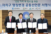 방위개념 명칭 지리적 혼란 해소 인천가치 재창조 일환 전국 첫 추진 새 명칭 역사·문화적 특성 반영 시·3개구, 명칭변경 공동선언문 서구는 주민 공감대 갖춘후 변경 인천시가 인천가치 재창조의 일환으로 전국 최초로 추진하는 방위개념 자치구 명칭변경 사업이 본 궤도에 올랐다. 인천시는 14일 시청 영상회의실에서 동구, 남구, 서구와 ‘자치구(區) 명칭변경 공동선언문’을 발표했다. 이날 공동선언문 발표식에는 유정복 시장과 이흥수 동구청장, 박우섭 남구청장, 강범석 서구청장을 비롯해 남기명 인천발전연구원장과 동구, 남구 주민 등이 참석했다. 해당 군·구는 공동선언문에서 방위개념에 따라 정해졌던 자치구 명칭에 대해 역사성과 정체성 및 시대적 여건변화와 주민정서를 반영한 명칭으로 변경하기로 했다. 이에 따라 동구와 남구는 2016년부터 자치구 명칭변경을 우선 추진하고 서구는 주민 공감대 형성 등 기반여건을 갖춘 후 추진키로 했으며 행정비용은 시가 최대한 지원한다. 시는 지난 3월 인천발전연구원에 ‘인천시 행정구역 명칭 대안 연구용역’을 의뢰했으며 그 결과를 해당 구에 설명했다. 이어 지난달