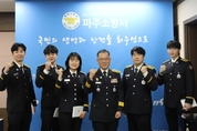 파주소방서는 1일 근속승진 대상자 11명에 대한 계급장 수여식을 실시했다. 이번 수여식에서는 소방위로 승진한 오진숙, 소방장 김병규·정호석·정인렬·양승현·김우진·추정규·배달선·변지훈·김창한·박광은 등 총 11명의 소방공무원에게 계급장이 수여됐다. 김명찬 서장은 “시민의 안전을 위해 묵묵히 소임을 다해온 승진자 여러분께 진심으로 감사드리며, 승진을 다시 한번 축하드린다”며 “책임과 역할이 한층 더 커진 만큼, 소방대원으로서의 사명감과 자부심을 갖고 현장에서 최선을 다해주기 바란다”고 당부했다. [ 경기신문 = 김은섭 기자 ]