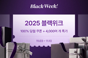 리테일 테크 기업 컬리가 연말 대규모 할인 프로모션을 진행한다. 컬리는 블랙프라이데이 시즌을 맞아 11월 한 달간 대규모 할인 행사 ‘블랙위크’를 개최한다고 5일 밝혔다. 1주 차 블랙위크 본프로모션은 이달 10일까지 진행되며, 매일 최대 1만 원 100% 당첨 쿠폰과 최대 90% 잭팟 쿠폰을 제공한다. 누적 판매량 10만 개 이상 상품을 장바구니에 담으면 추첨을 통해 24K 순금 1돈 골드바와 애플워치 등을 증정하는 ‘블랙위크 래플’ 이벤트도 함께 열린다. 과일, 야채, 달걀 등 주요 생필품은 연중 최저가로 판매된다. 2주 차인 10일부터 17일까지는 멤버십 전용 행사인 ‘멤버스위크’가 이어진다. 멤버스 고객은 CJ, 하림 등 인기 식품 브랜드를 할인된 가격에 구매할 수 있으며, 연말 시즌 인기 주얼리 브랜드 이에르로르·베흐트·제이에스티나·먼데이에디션 제품도 특가로 만나볼 수 있다. 또한 가전, 침구, 크리스마스트리 등은 최대 25% 추가 할인 쿠폰이 제공된다. 블랙위크의 마지막은 17일부터 내달 1일까지 진행되는 ‘라이프스타일 대전’이 장식한다. 이 기간에는 1시간 한정 특가 판매 ‘블랙위크 타임딜’이 열려 락앤락 밥 보관 용기, 클래파 2단 올스텐 계란