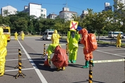 인천 서구는 최근 인천아시아드 주경기장에서 ‘2019년 생물테러 대비 합동 모의훈련’을 실시했다고 26일 밝혔다. 이번 훈련은 3개 기관 50여 명이 참여해 생물테러에 대한 초동대응기관의 공조체계 및 대응역량 강화와 현장통제, 정황파악, 폭로자 대피, 환경검체 검사 등 초동조치과정을 실전처럼 진행했다. /이정규기자 ljk@