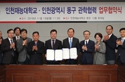 인천 동구는 19일 재능대학교와 지역발전을 위해 상호협력을 위한 관·학협약을 체결했다. 협약의 주요 내용은 ▲지역발전을 위한 협의체제 마련 ▲구의 각종 사업 및 연구과제 공동 참여 ▲지역주민의 평생교육 및 일자리 창출 협력 ▲초·중·고 교육지원사업 협력체계 구축 등의 내용을 담고 있다. /이정규기자 ljk@