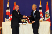 김종훈 통상교섭본부장과 마르틴 페레스 페루 통상관광부장관은 15일 오전 한·페루 자유무역협정(FTA)에 가서명했다. 이로써 한국은 8번째 FTA를 체결하게 됐으며 체결대상국도 45개국으로 늘었다. 양국 통상장관은 이날 청와대에서 이명박 대통령과 알란 가르시아 페루 대통령이 임석한 가운데 지난 8월31일 타결한 한·페루 FTA에 대한 가서명식을 가졌다. 한·페루 FTA에 따르면 양국은 협정 발효 후 10년 이내에 모든 교역 품목의 관세를 철폐하게 된다. 특히 페루로 수출되는 한국산 컬러TV와 배기량 3천㏄이상 대형차의 관세는 협정 발효 뒤 즉시 철폐되며, 1천500∼3천㏄ 중형차에 대한 관세는 5년내, 기타 승용차는 10년 내에 관세가 단계적으로 사라진다. 수출용 세탁기와 냉장고에 대한 관세도 각각 4년, 10년 내에 철폐된다. 농·수산물의 경우 한국 측 민감 품목인 쌀, 쇠고기, 고추, 마늘, 인삼류, 명태 등 107개 품목은 FTA협정 대상 품목에서 제외됐으며, 그 외 202개 농·수산물은 협정 발효 10년후 관세를 철폐하게 된다. 한·페루FTA 가서명… 쌀 등