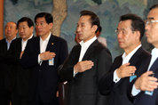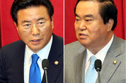 한나라당 박희태 대표(왼쪽)가 17일 오전 서울 여의도 당사에서 열린 최고위원회의에서 모두발언을 마친 뒤 마이크를 정몽준 최고위원에게 전달하고 있다. /연합뉴스 한나라당 홍준표 원내대표와 민주당 원혜영 원내대표가 16일 만찬 회동을 갖고 7월말까지 국회 원구성 협상을 완료한다는데 원칙적으로 의견을 같이한 것으로 알려졌다. 홍 대표는 17일 여의도 당사에서 열린 최고위원회의에서 “어제 민주당 원혜영 원내대표와 만나 환갑을 맞는 국회가 옛날처럼 단상을 점거하거나 물리적인 몸싸움으로 국민 눈살을 찌푸리게 하는 일은 없도록 하자고 이야기했다”고 밝혔다. 홍 대표는 “개원 협상은 7월말까지 이뤄지지는 쪽으로 대체로 이야기가 됐다”면서 “조속히 국회가 개원협상을 완료해 원구성이 정상적으로 되도록 하겠다”고 말했다. 같은 당 김정권 공보담당 원내부대표도 “어제 양당 원내대표 및 수석·공보담당 부대표가 모였다”면서 “협상은 아니고 친목 차원의 자리였지만 원구성은 7월말까지는 해야하지 않겠느냐는 이야기가 나왔고, 민주당에서도 최대한 빨리 하자고 했다”고 전했다. 이에 대해 민주당 서갑원 수석부대표는 “이번원구성을 기점으로 향후에도 원구성 문제를 갖고 국회를 공전시키거나, 여