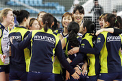 수원 현대건설이 4년 만에 챔피언결정전에 진출했다. 현대건설은 13일 인천 계양체육관에서 열린 NH농협 2015~2016 프로배구 V리그 여자부 플레이오프 2차전에서 인천 흥국생명을 세트스코어 3-1(18-25 25-20 25-15 25-16)로 제압했다. 지난 11일 1차전에서도 3-1로 승리했던 현대건설은 이로써 3전 2선승제의 플레이오프에서 2연승을 거두며 챔피언결정전 진출을 확정했다. 2011~2012시즌 이후 4년 만에 챔피언결정전(5전 3승제) 진출 티켓을 손에 넣은 현대건설은 17일부터 정규리그 우승팀 화성 IBK기업은행과 우승을 다투게 됐다. 지난 시즌 플레이오프에서 기업은행에 패하며 챔피언결정전 진출이 좌절됐던 현대건설을 이번 시즌 챔피언결정전에서 설욕을 벌이게 됐다. 현대건설은 1세트 4-4에서 내리 6점을 내주는 등 흥국생명 이재영과 외국인 선수 엘레시스 올가드에게 6점과 4점을 내주고 센터 김수지에게도 3점을 허용하며 맥없이 세트를 내줬다. 첫 세트를 내준 현대건설은 1세트에 지나치게 이재영에게 의존한 흥국생명을 상대로 ‘이재영 봉쇄책’을 펼쳤고 황연주가 이재영 앞에서 부지런히 움직이며 이재영을 압박했다. 그 결과