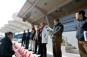 경기도체육회는 17일 제62회 경기도체육대회 개최지인 포천시를 방문, 현장점검을 실시했다. 이날 점검에는 최규진 도체육회 사무처장과 강병국 총괄본부장을 비롯해 이윤행 포천시 문화체육과장, 지승룡 도민체전 추진기획단 팀장, 김종국 포천시체육회 상임부회장, 오대근 시체육회 사무국장이 참석했다. 점검은 오는 4월 포천시 일원에서 개최될 예정인 경기도체육대회를 성공적으로 치르기 위해 현 준비상황과 경기 주요시설을 사전 점검하는 차원에서 진행됐으며 개회식과 육상경기가 열릴 포천종합운동장과 검도, 테니스, 축구, 배구 경기장 등을 방문해 숙박, 교통, 안전 대책 등의 준비상황을 점검했다. 최규진 사무처장은 “제62회 경기도체육대회 개최를 위해 고생하신 포천시 관계자 여러분께 감사드린다”며 “3개월여 남은기간 동안 포천시를 찾는 선수 및 임원진들이 불편함이 없도록 철저한 준비를 통해 만전을 기해주길 바란다”고 당부했다. 제62회 경기도체육대회는 오는 4월 28일부터 30일까지 3일간 포천종합운동장 등 34개 경기장에서 1만2천여명의 선수단 및 포천시민이 함께한 가운데 육상 등 24개 종목이 펼쳐진다./정민수기자 jms@