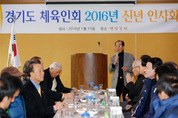 경기도내 체육 원로인들의 모임인 경기도체육인회가 13일 수원시내 모 음식점에서 2016년 신년 인사회를 개최했다. 이날 신년회에는 경기도체육인회 정기철 회장을 비롯한 체육원로 70여명과 새롭게 통합된 경기도체육회 최규진 사무처장, 강병국 총괄본부장 등 임직원이 참석했다. 정기철 회장은 신년 인사말을 통해 “올 한해도 경기도내 체육원로 분들의 건강을 기원하며, 체육인 가족 모두가 홍복(洪福)한 한 해가 되시길 기원드린다”고 말했다. 최규진 사무처장은 “체육회와 생활체육회가 통합해 새로운 경기도체육회가 출범했고 제97회 전국체육대회가 충청남도에서 개최가 되는 만큼 2001년도에 있었던 종합 3위의 성적을 설욕할 수 있는 한 해가 되도록 많은 성원을 당부드린다”고 전했다. /정민수기자 jms@