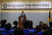 프로축구 K리그 클래식 성남FC는 이석훈(46) 구단 홍보마케팅실장을 신임 대표이사로 선임했다고 5일 밝혔다. 신임 이 대표이사는 이날 탄천종합운동장 이벤트홀에서 열린 취임식에서 “지난 2년간 성남FC에 몸담으면서 경험했던 것을 바탕으로 뿌리가 튼튼하고 자생력있는 구단으로 발전시켜 나가겠다”고 말했다. 지난 2014년 1월 공개채용을 통해 성남FC에 입단한 이 대표이사는 마케팅사업부장과 홍보마케팅실장을 거쳐 제3대 대표이사로 취임하게 됐다. /정민수기자 jms@