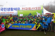 경기도등산연합회가 2015 국민생활체육 전국등산대회에서 우승을 차지했다. 경기도등산연합회는 8일 제주특별자치도 한라산 관음사 등산코스에서 열린 대회에서 세종특별자치시등산연합회와 대구광역시등산연합회를 꺾고 정상에 올랐다. 경기도등산연합회는 이날 관음사를 출발해 탐라계곡, 개미등, 삼각봉을 왕복하는 12㎞구간을 5시간30분에 완주하는 코스에서 공동장비 평가, 개인장비 평가, 산행질서, 팀워크, 등반상식 등에서 참가 시·도 중 가장 높은 평가를 받아 우승을 확정했다./정민수기자 jms@