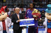 프로농구 외국인 선수 통산 최다 득점 기록을 세운 애런 헤인즈(사진)의 시상식이 8일 고양체육관에서 열렸다. 헤인즈는 지난 7일 안양체육관에서 열린 2015~2016 KCC 프로농구 정규리그 안양 KGC인삼공사와 경기에서 18점을 올려 통산 7천81점을 기록하며 조니 맥도웰(전 울산 모비스)이 가지고 있는 외국인 선수 통산 최다 득점(7천77점)을 넘어섰다. 헤인즈는 3쿼터 종료 3분43초를 남기고 골밑득점으로 통산 7천79점을 기록하며 새 기록을 작성했다. 헤인즈는 8일 열린 인천 전자랜드와의 홈 경기에서도 26점, 18리바운드, 11어시스트로 올 시즌 처음이자 자신의 한국무대 첫 트리플더블을 기록하며 팀 승리를 주도하며 외국인 통산 최다 득점을 7천107점으로 늘렸다. /정민수기자 jms@
