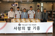 프로야구 막내구단 케이티 위즈가 추석 명절을 맞아 홈 구장인 수원 케이티위즈파크 주변에 어려운 이웃을 돕기 위해 ‘사랑의 쌀’ 3t을 전달했다. 케이티는 추석을 앞둔 22일 수원 케이티위즈파크 인근 장안구 송죽동 주민센터와 조원1동 주민센터, 조원2동 주민센터를 방문 사랑의 쌀 전달식을 진행했다. 이날 전달식에는 송죽동 주민센터에 김재윤·정성곤, 조원1동 주민센터에 오정복·김사연, 조원2동 주민센터에 조무근·엄상백이 구단 프런트 직원들과 함께 팀 대표로 방문했으며 총 3t의 쌀을 선수단 일동의 이름으로 기부했다. 케이티가 기부한 쌀은 각 주민센터를 통해 지역 내 홀몸 어르신들에게 전달될 예정이다. 케이티 관계자는 “홈 구장 주변 이웃에게 작게나마 도움을 줄 수 있어 기쁘다”며 “첫 시즌을 진행하면서 여러 가지 불편사항이 발생했음에도 넓은 마음으로 이해해 준 인근 주민들에게 감사드린다”고 말했다./정민수기자 jms@