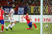 한국 축구 대표팀이 잠시 잊혔던 ‘공한증(恐韓症)’을 중국 대표팀에 다시 일깨워주면서 2015 동아시아축구연맹(EAFF) 축구선수권대회(이하 동아시안컵) 1차전에서 시원한 승리를 따냈다. 울리 슈틸리케 감독이 이끄는 축구 대표팀은 2일 중국 우한 스포츠센터에서 열린 중국과의 2015 동아시안컵 1차전에서 나란히 A매치 데뷔전을 치른 김승대(포항)와 이종호(전남)의 ‘A매치 데뷔골 릴레이’가 이어지며 2-0으로 완승했다. 이날 승리로 한국은 중국과의 역대 전적에서 17승12무1패로 일방적인 우세를 이어갔다. 더불어 지난 2010년 2월 일본 도쿄에서 열린 동아시안컵에서 중국에 0-3으로 지면서 역대 처음으로 중국을 상대로 패했던 아쉬움을 5년 만에 깨끗하게 씻어냈다. 또 1차전에서 2-0으로 이긴 한국(승점 3점·골득실+2)은 이날 나란히 승리를 따낸 북한(승점 3점·골득실+1)을 제치고 중간순위 1위에 올랐다. 슈틸리케호는 오는 5일 오후 7시20분 ‘숙적’ 일본을 상대로 대회 2차전을 치른다. 유럽파가 빠지고 K리그에서 활약하는 ‘젊은 피’로 대표