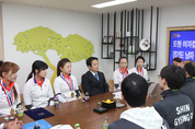 남경필 경기도지사는 23일 경기도청에서 2015~2016년도 컬링 국가대표로 선발된 경기도청 여자팀과 올림픽대표팀으로 선발된 경기도컬링경기연맹 남자팀을 초청해 격려했다. 지난 14일 국가대표선발전을 겸해 개최된 2015 KB금융 한국컬링선수권대회에서 경기도청 여자팀은 예선 7경기와 1~2위 플레이오프, 결승전까지 9경기를 전승으로 우승해 국가대표에 선발됐고, 도컬링연맹 남자팀은 결승에서 강원도청에게 아쉽게 패하며 올림픽대표로 뽑혔다. 특히 남자팀은 정식 팀이 아닌 도내 학교 컬링팀 지도자로 구성된 팀으로 상시훈련이 어려운 가운데에서도 우수한 성과를 거둬 의미가 컸다. 지난해 불미스러운 일로 팀 운영에 차질이 생기면서 국가대표선발전에 출전하지 못했던 경기도청 컬링팀은 1년만에 국가대표를 탈환하며 다시 한번 2018 평창동계올림픽 출전의 의지를 다졌다. 남경필 지사는 “경기도선수단이 어려운 순간을 이겨내고 좋은 성적을 거둔 만큼 향후 더 기대되는 팀으로 성장하기 바란다”고 말했다. /정민수기자 jms@